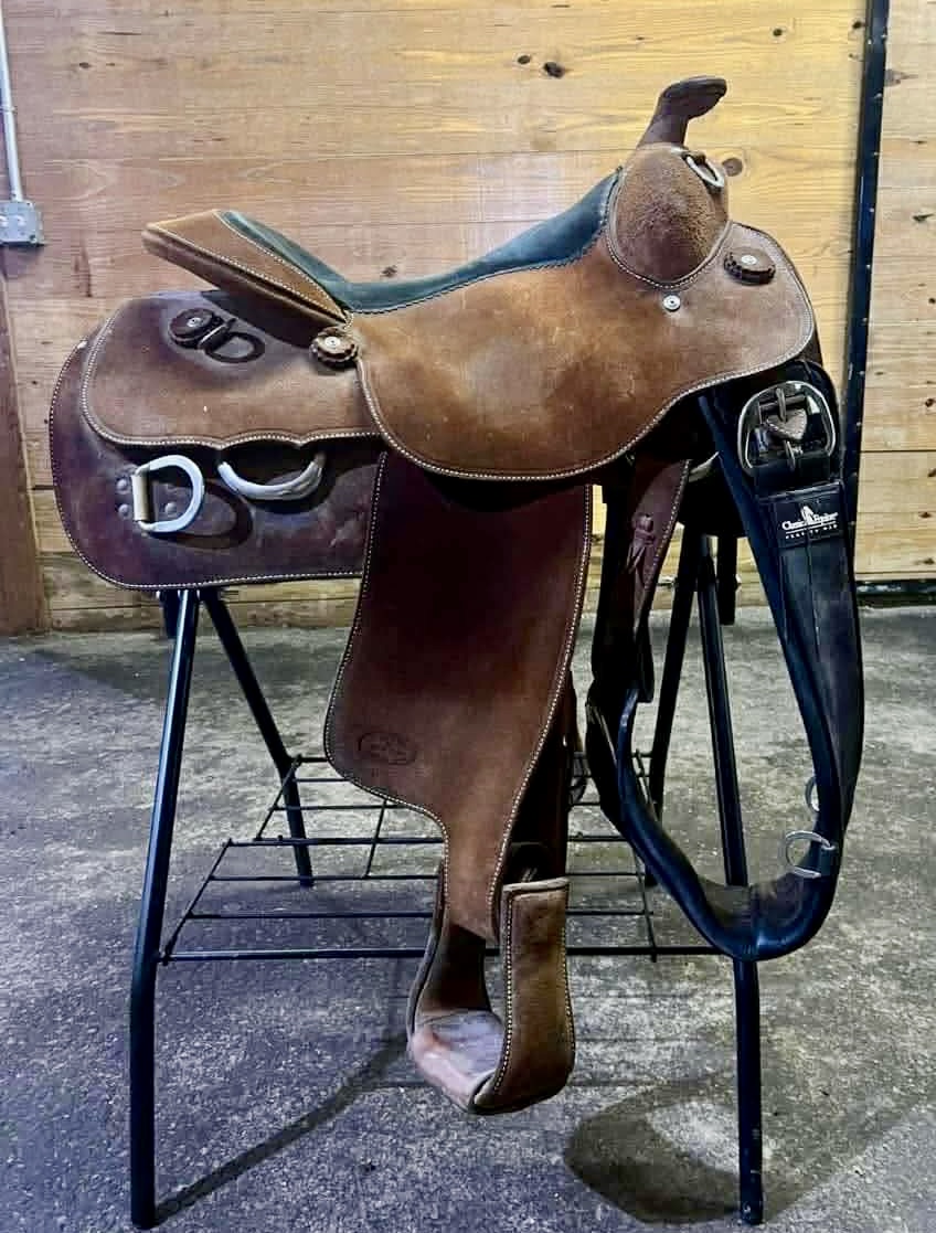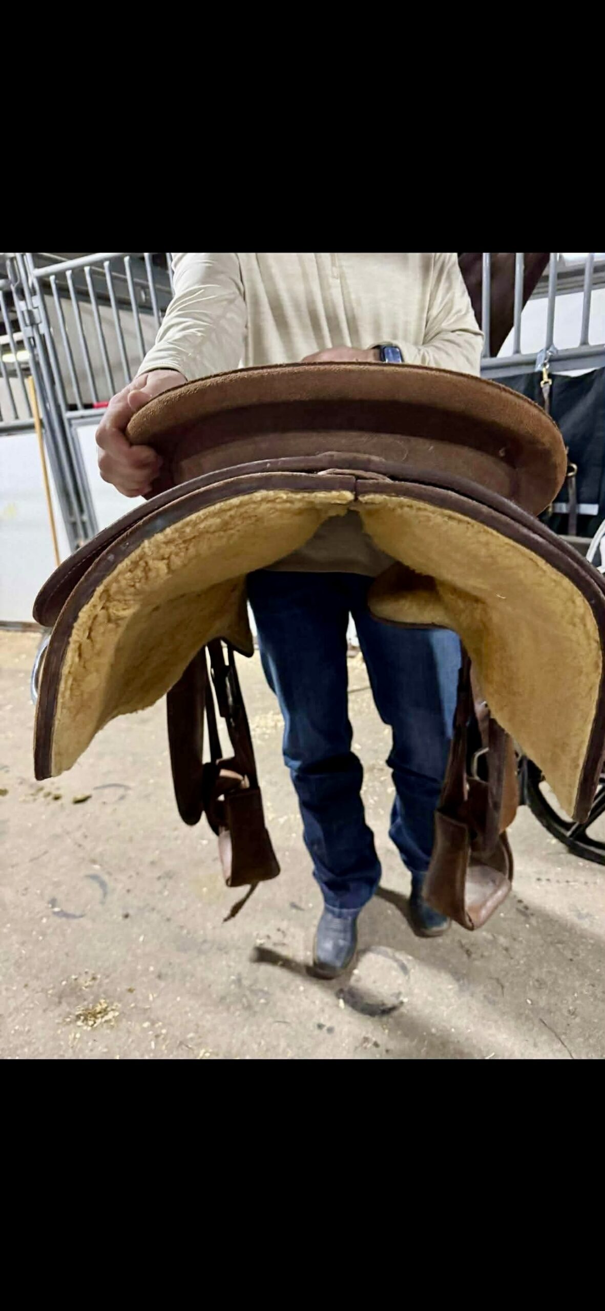 Steve Flick work saddle. 16” padded to 15.5. Buyer pays shipping. Located in Ohio.
