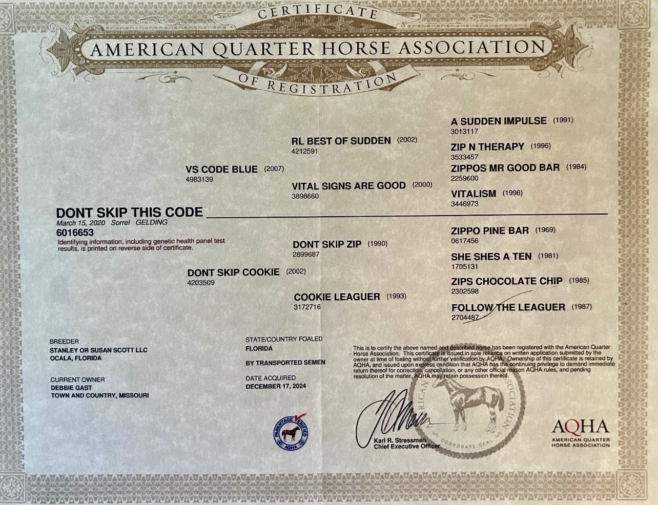 Meet Dont Skip This Code—known in the barn as “Gio” (a.k.a. “Kenny”)—the kind of big-bodied, sweet-natured, do-everything gelding everyone searches for and few ever find. At just 5 years old, this stunning 2020 sorrel gelding already boasts an exceptional all-around foundation, 71 AQHA points, and a résumé loaded with wins… all with limited showing.